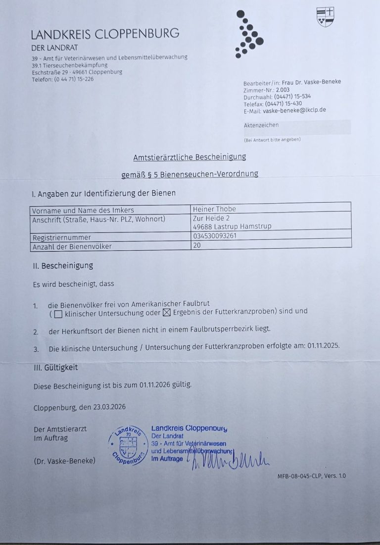 Ich wollte Ihnen nur einmal kurz mitteilen, dass ihre Königinnen sehr gut sind. Es macht richtig viel Spaß mit ihnen zu arbeiten. Gerne komme ich im Spätsommer wieder auf sie zurück.